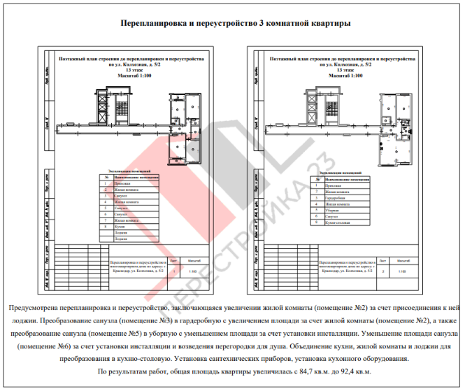 Изменение планировки и площадей