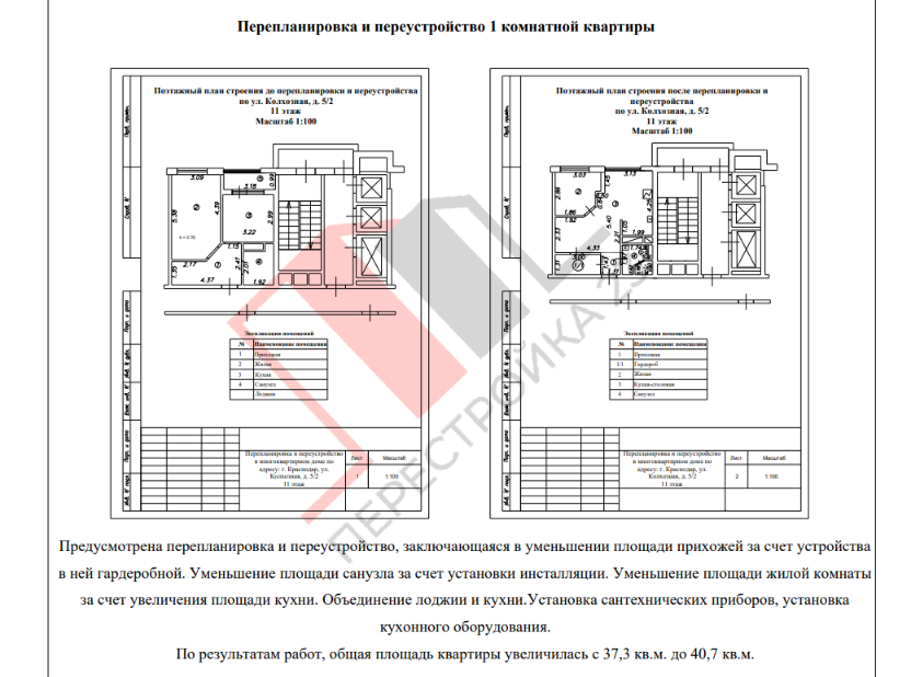 Изменение планировки и площадей