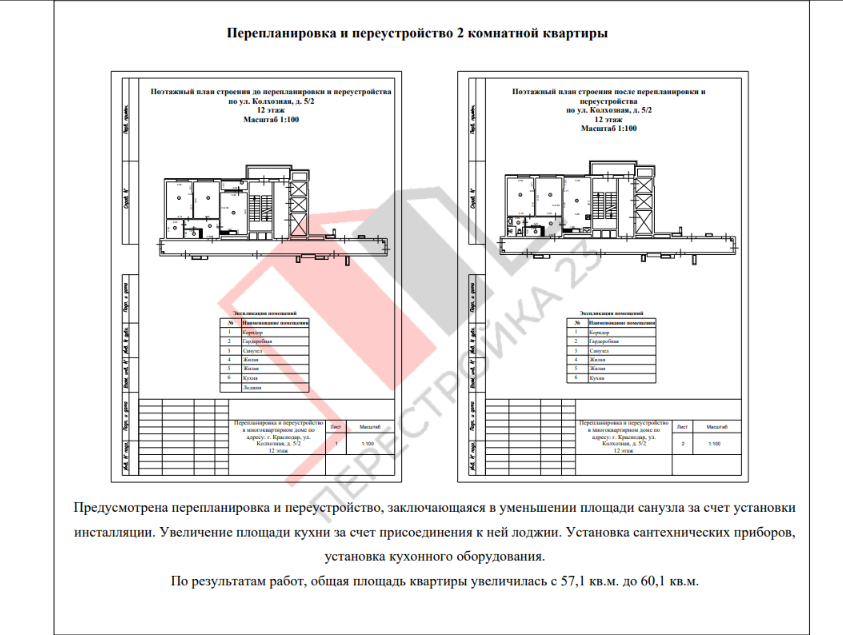Изменение планировки и площадей